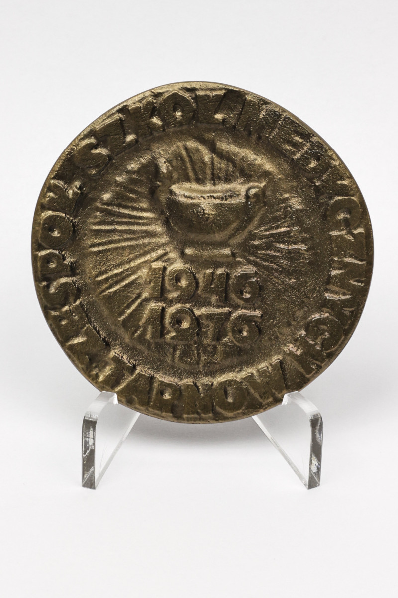 Pamiątkowy medal wydany z okazji jubileuszu 30-lecia Zespółu Szkół Medycznych w Tarnowie 1946-1976; sygnowany: AB Drwal