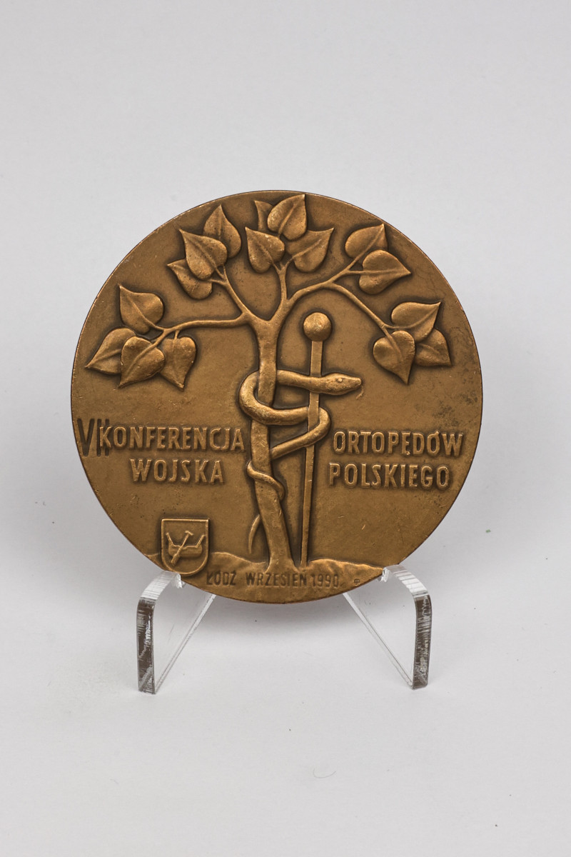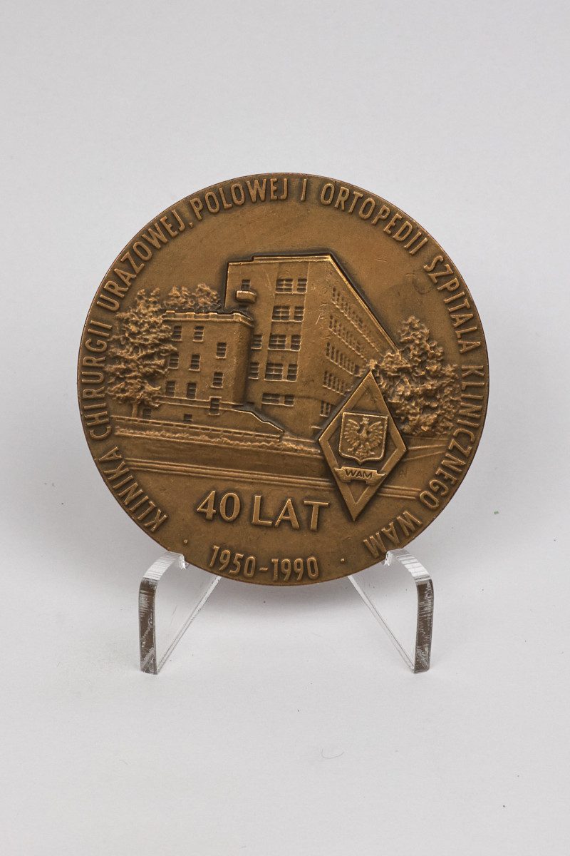 Pamiątkowy medal wydany z okazji 40. lecia Kliniki Chirurgii Urazowej, Polowej i Ortopedii Szpitala Klinicznego Wojskowej Akademii Medycznej, 1950 – 1990 oraz na pamiątkę VII Konferencji Ortopedów Wojska Polskiego, która odbyła się w Łodzi we wrześniu 1990 r.