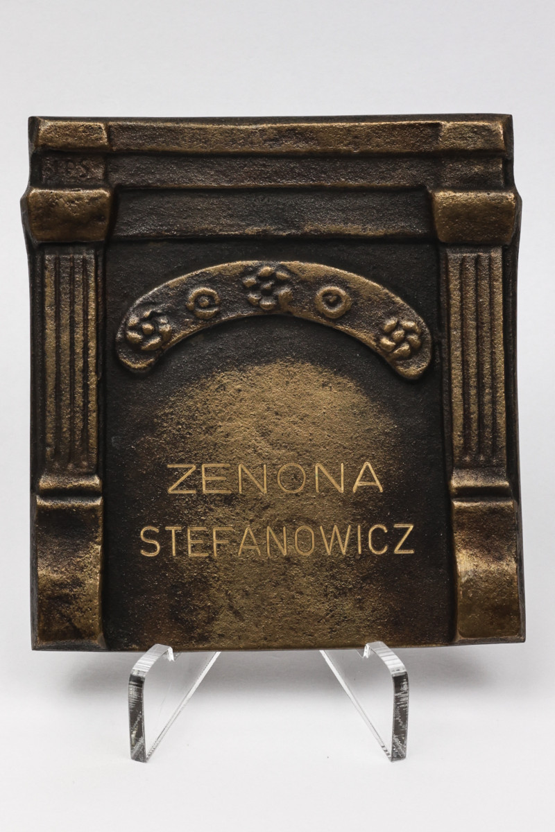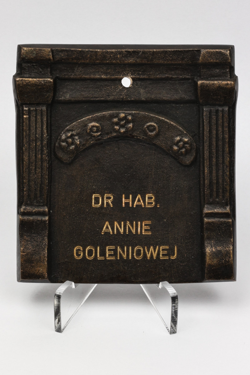 Pamiątkowy medal imienny wybity i przyznawany pracownikom naukowym i administracyjnym z okazji jubileuszy 25. lecia pracy w Akademii Medycznej w Poznaniu: dr hab. Annie Goleniowej i Zenonie Stefanowicz;