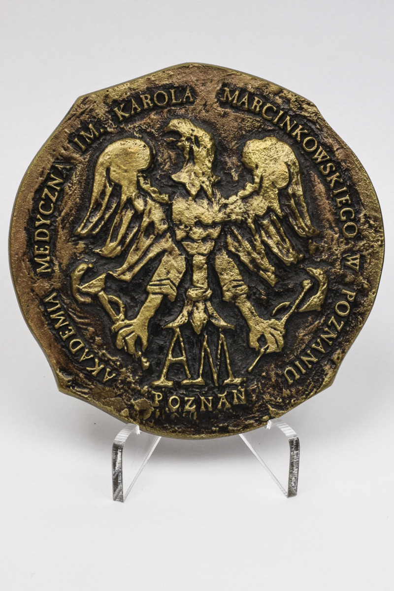 Opublikowano 2023-07-182023-10-20 przez Katarzyna Fulbiszewska Akademia Medyczna im. Karola Marcinkowskiego w Poznaniu Pamiątkowy medal o nieregularnym kształcie, wydany z okazji 25. lecia powstania Wydziału Nauk o Zdrowiu przez Akademia Medyczna im. Karola Marcinkowskiego w Poznaniu. Pamiątka po dr hab. n. med. Annie Golenia Nawigacja wpisuPoprzedni wpis: Akademia Medyczna w Poznaniu 1920-1979 r.Następny wpis: Heliodor Święcicki, Uniwersytet w Poznaniu