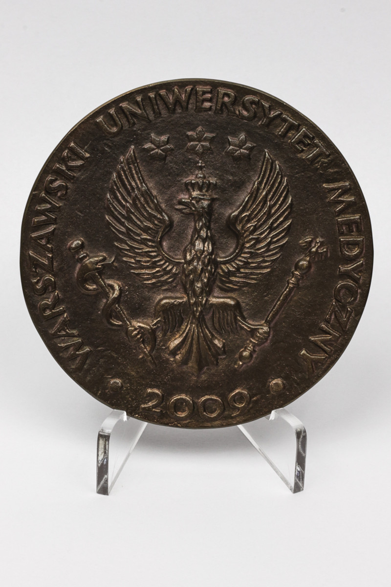 Rewers: w centralnej części znajduje się godło Uniwersytetu; napis po okręgu: Warszawski Uniwersytet Medyczny 2009